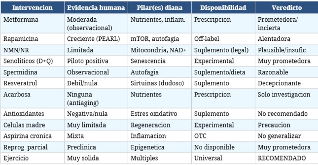 - No existe “la píldora mágica” antiaging, solo avances parciales y progresivos.